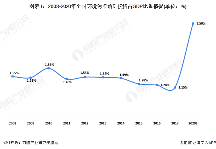 根據(jù)國(guó)家統(tǒng)計(jì)局?jǐn)?shù)據(jù),全國(guó)環(huán)境污染治理總投資從2008年的4937億元增加到2017年的9539億元,年復(fù)合增長(zhǎng)率6.81%。雖然我國(guó)環(huán)境污染治理投資逐年上升,但截至2017年,我國(guó)環(huán)境污染治理投資占gdp的比重僅為1.2%。從國(guó)際經(jīng)驗(yàn)來看,當(dāng)環(huán)境污染治理投資占gdp的比例在1%-1.5%時(shí),可以控制環(huán)境惡化的趨勢(shì);當(dāng)比例達(dá)到2%-3%時(shí),環(huán)境可以有效得到改善。根據(jù)《全國(guó)城市生態(tài)保護(hù)與建設(shè)規(guī)劃(2015-2020年)》數(shù)據(jù),到2020年,我國(guó)環(huán)保投資占gdp的比例不低于3.5%,環(huán)保投資有很大提升空間。